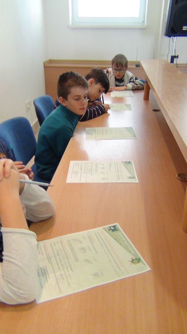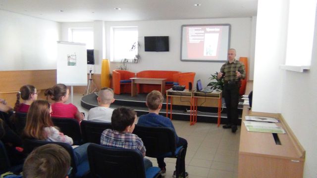 Veľmi sa nám páčilo prekliknutie LES/KNIHA. Lesný pedagóg výrazne vyzdvihol význam nielen lesa ale aj knihy. Namotivoval ich na čítanie aj osobnými príkladmi a spoločne sa predbiehali v tom, čo kto rád číta. Poučné stretnutie malo aj svoju pomyselnú „čerešničku na torte“. Či skôr „medík na strome?“ Totiž - ako top činnosť pre žiakov na záver vyše dvojhodinového stretnutia mohli skladať doslova umelecké puzzle z dreva. Pán Stavný im totiž priniesol 4 sady puzzle. Boli neobyčajné - vyrobil ich umelecký rezbár zo stredného Slovenska na objednávku Štátnych lesov TANAPu. Boli pomerne veľké, z dreva a v tvare listov rôznych stromov .Ich netradičné prevedenie ocenili aj chlapci a dievčatá. Ako roje včiel prelietavali z jedného listu na stole k druhému a mali úžasnú radosť, keď sa im ho podarilo poskladať celý.